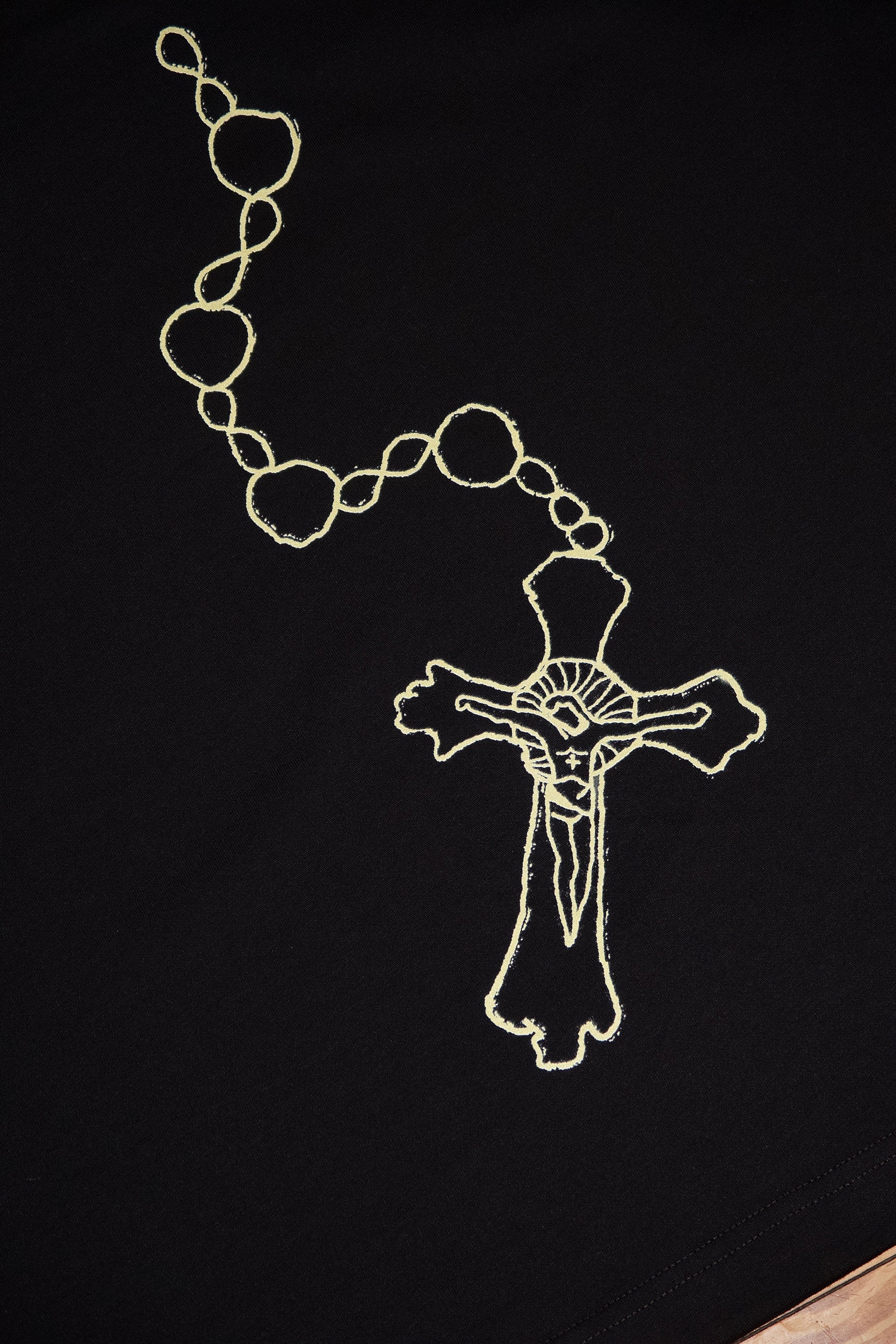 Representing our faith with Jesus' name front and center! "Jesus Is Love" graphic in light yellow with a darker outline on the front and a hand drawn graphic on the back of this boxy fit tee. Showcase your faith in Jesus!